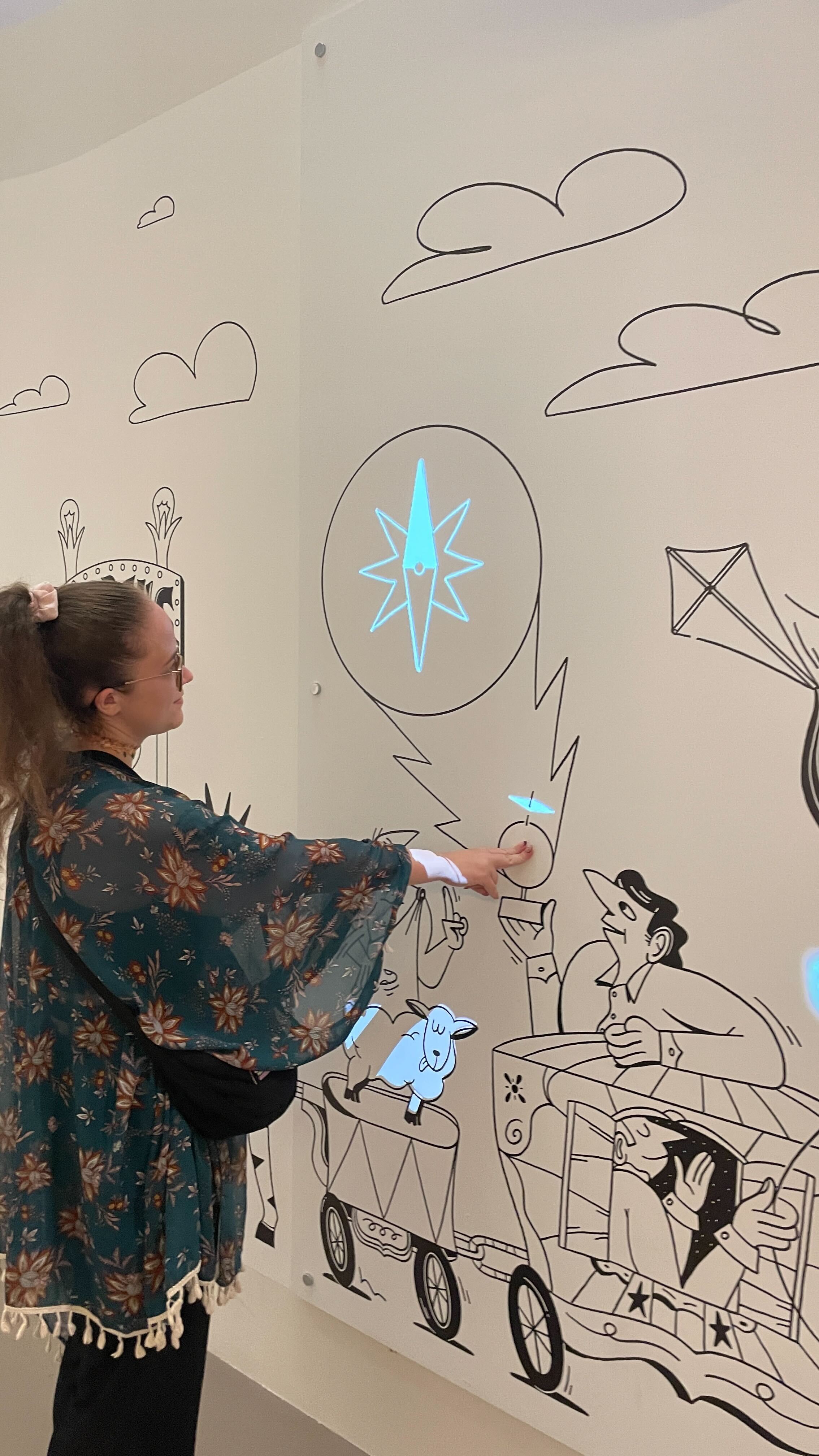 Pour l’exposition Électrique ! du MUMONS à Mons, Hovertone a collaboré à la création de deux dispositifs interactifs alliant innovation technologique et médiation ludique. Sur le Magic Wall, l’équipe a assuré le développement et l’intégration des technologies rendant la fresque tactile : capteurs et déclenchements multiples et projection permettent d’animer la surface en bois et de révéler les éléments clés de l’exposition. Ce mur sensible agit comme une synthèse visuelle, mettant en lumière les grandes thématiques et attise la curiosité des visiteurs.