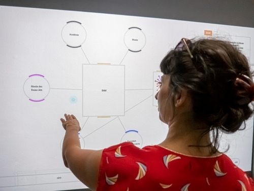 Au delà de l’exposition “Ecole de Mons” et des tableaux exposés, l’installation interactive “Liens” s’insère dans la scénographie comme une fenêtre sur tout ce qui n’a pas pu être présenté: pour un thème aussi vaste, impossible de reprendre tous les artistes, tous les intervenants, toutes les oeuvres…